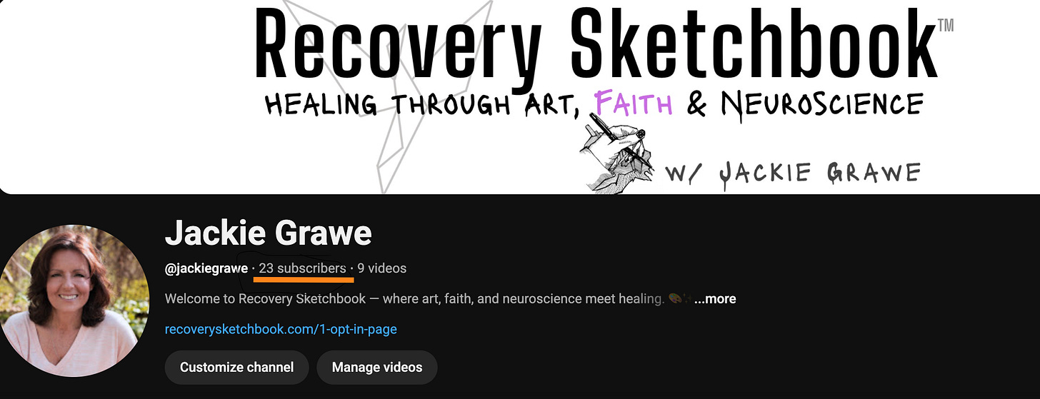 My only “ask” of this post is you subscribe to my YT channel so it may reach those who need a dash of hope and maybe even a bit of humor! (My greatest asset is I don’t take myself too seriously)